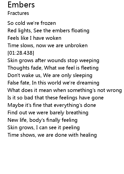 | [00:44.291] | Red lights, See the embers floating |