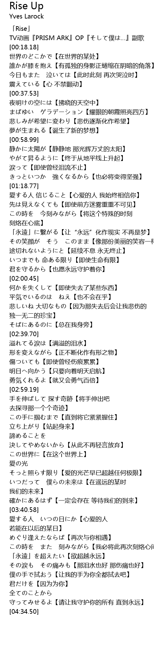 | [00:00.82] | 「Rise」 |