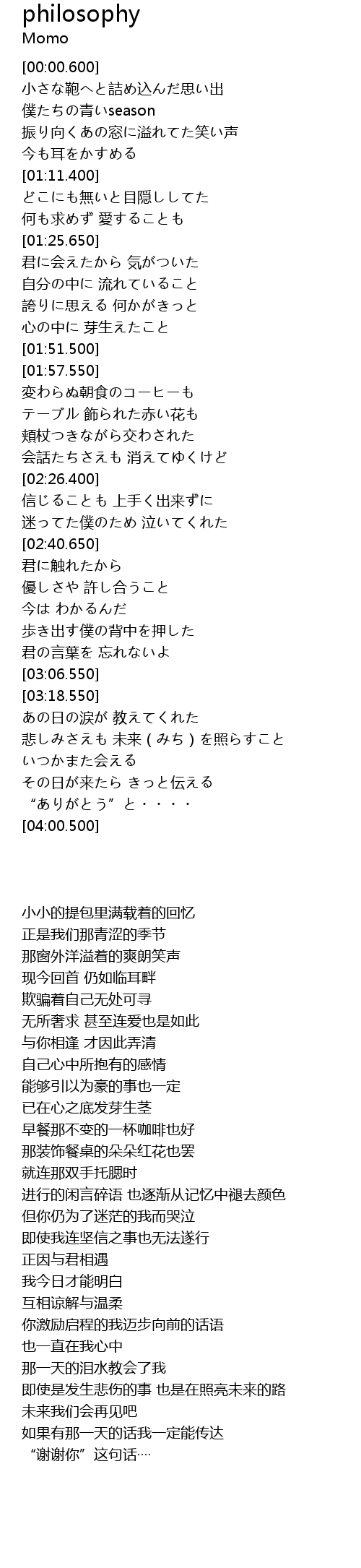| [02:32.440] | 迷ってた僕のため 泣いてくれた |
