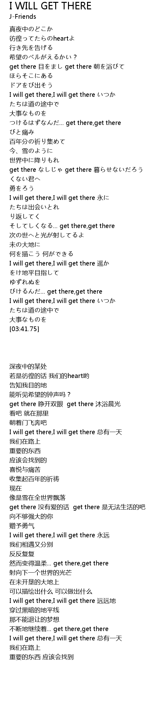 | [01:40.26] | get there なしじゃ get there 暮らせないだろう |