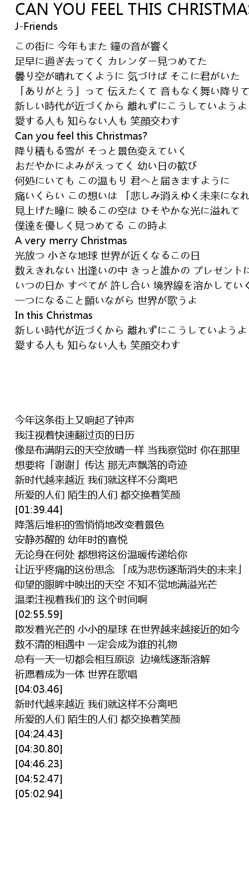 | Song | CAN YOU FEEL THIS CHRISTMAS? |