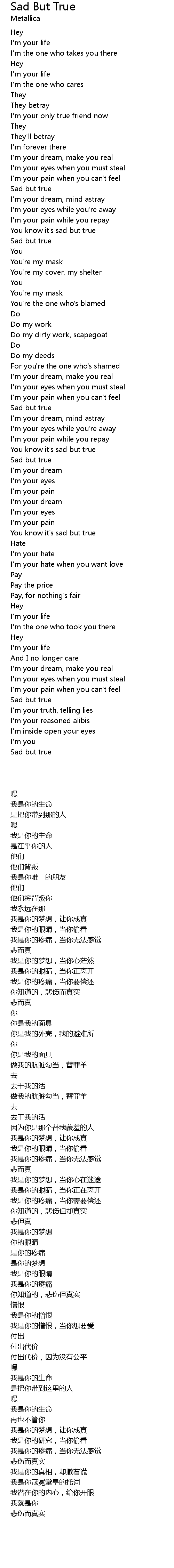 Sad But True Lyrics