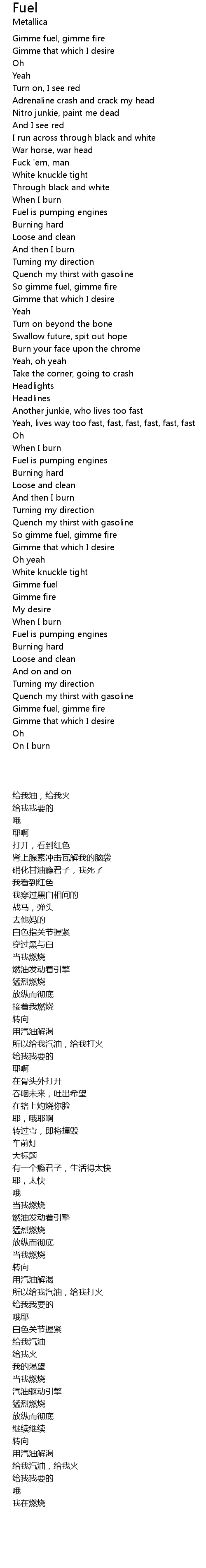 Gimme fuel, gimme fire |