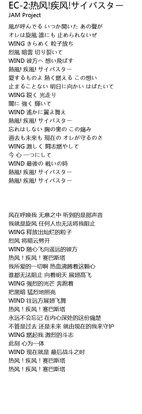| Song | EC-2:热风!疾风!サイバスター |