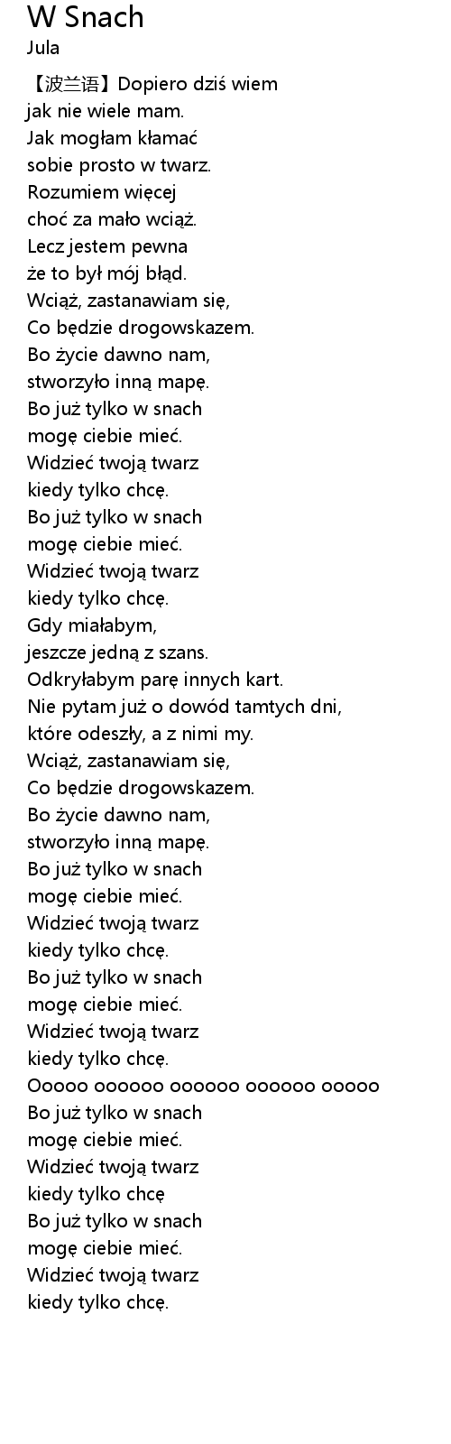 | [01:43.72] | Bo ju tylko w snach |