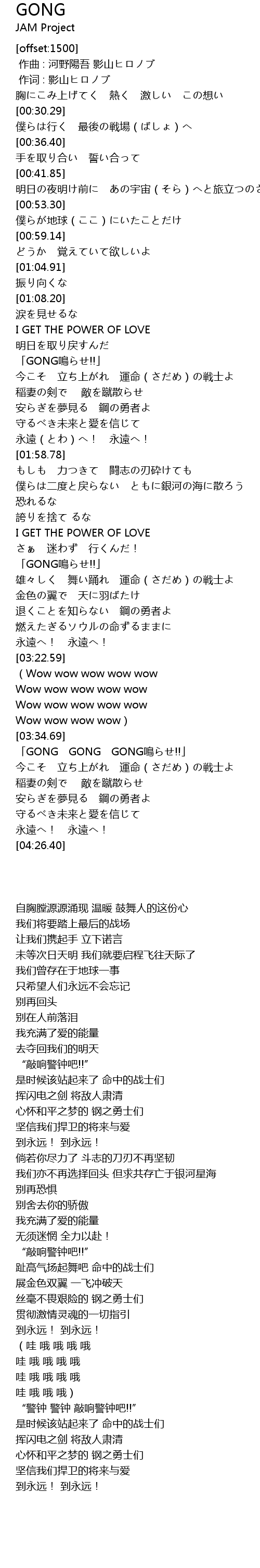 | [01:18.84] | 「GONG鳴らせ!!」 |