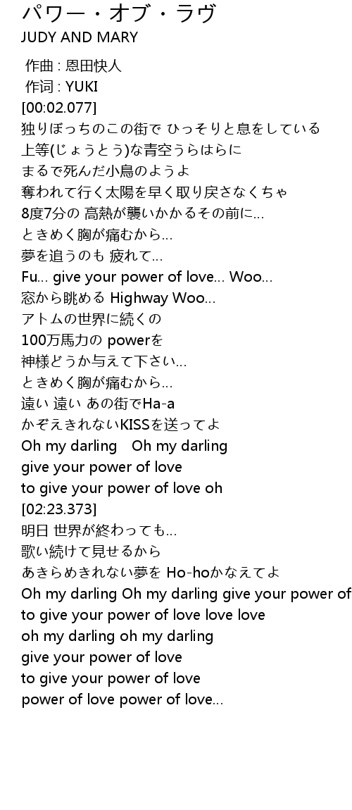 | [03:16.715] | Oh my darling Oh my darling give your power of love |