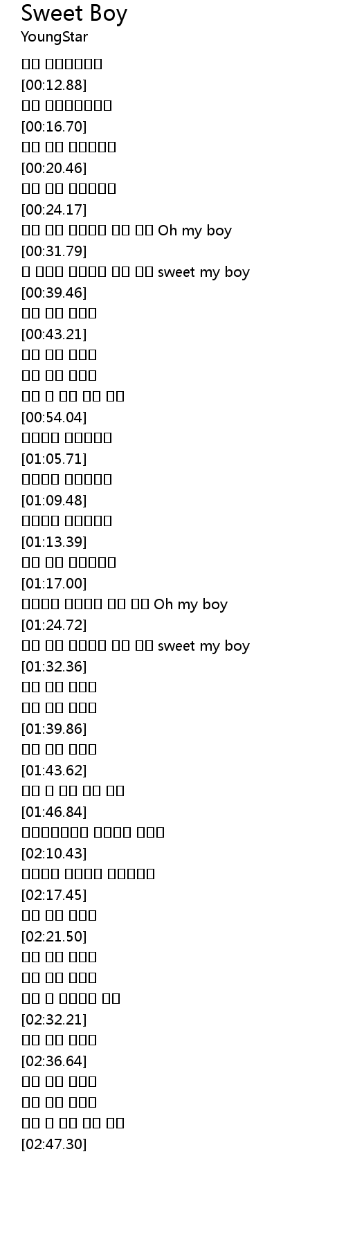 | [00:32.95] | 널 좋아해 미소짓는 그댄 나의 sweet my boy |