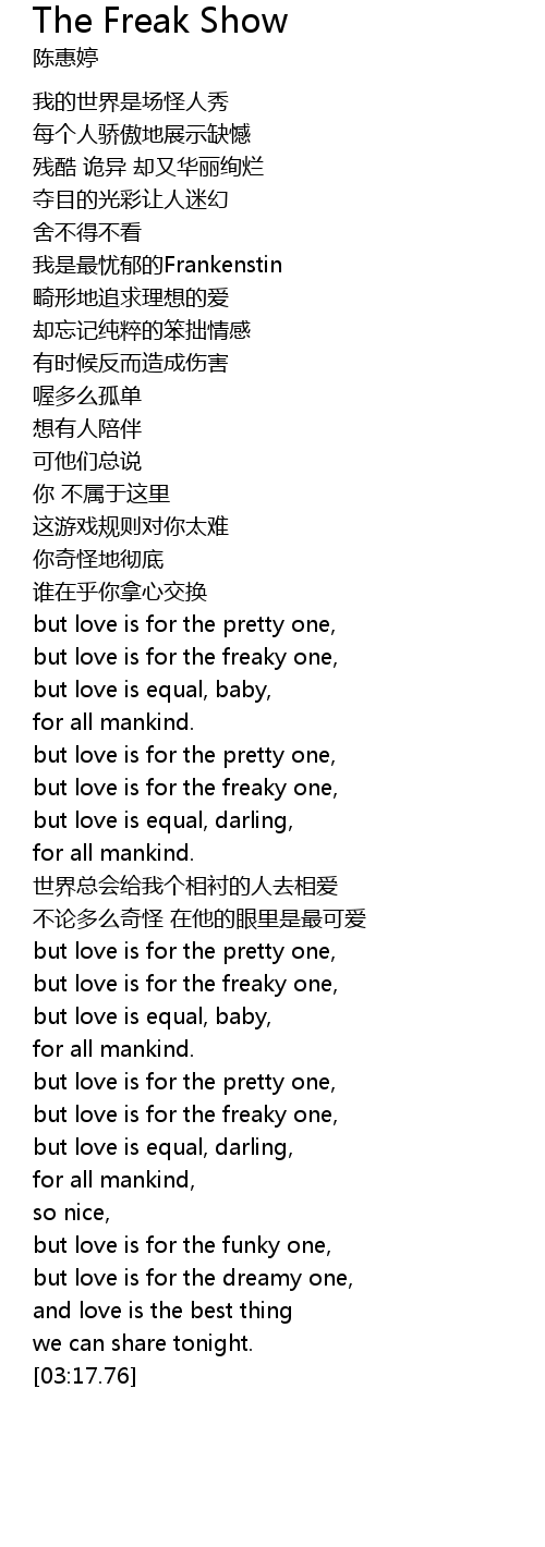 | [02:53.67] | but love is for the freaky one, |