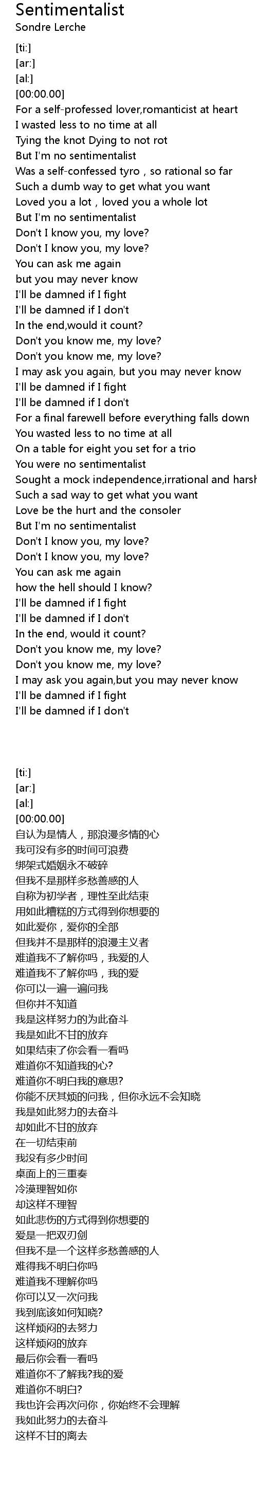 | [00:39.25] | But I' m no sentimentalist |