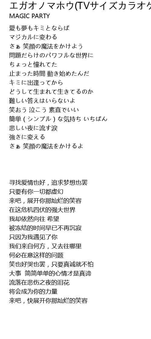 エガオノマホウ(TVサイズカラオケ)