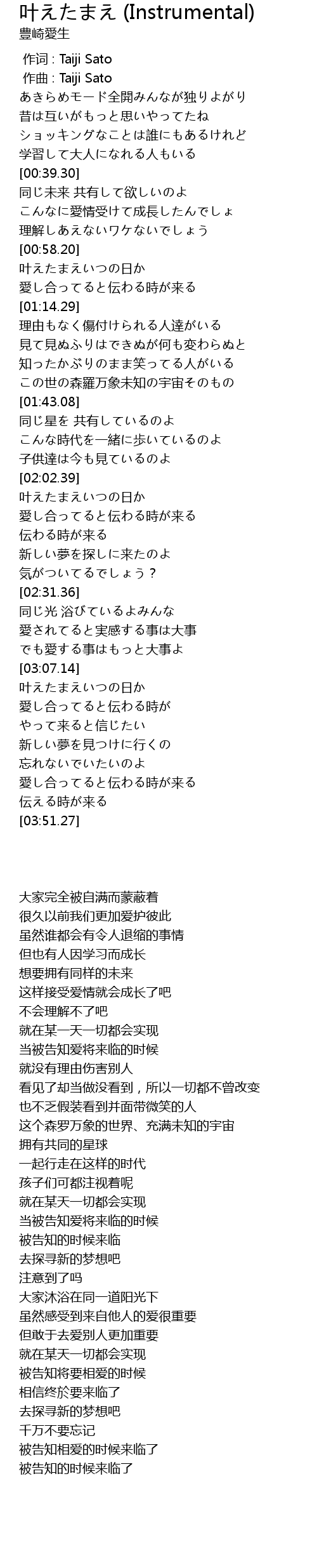 | [00:00.000] | 作词 : Taiji Sato |
