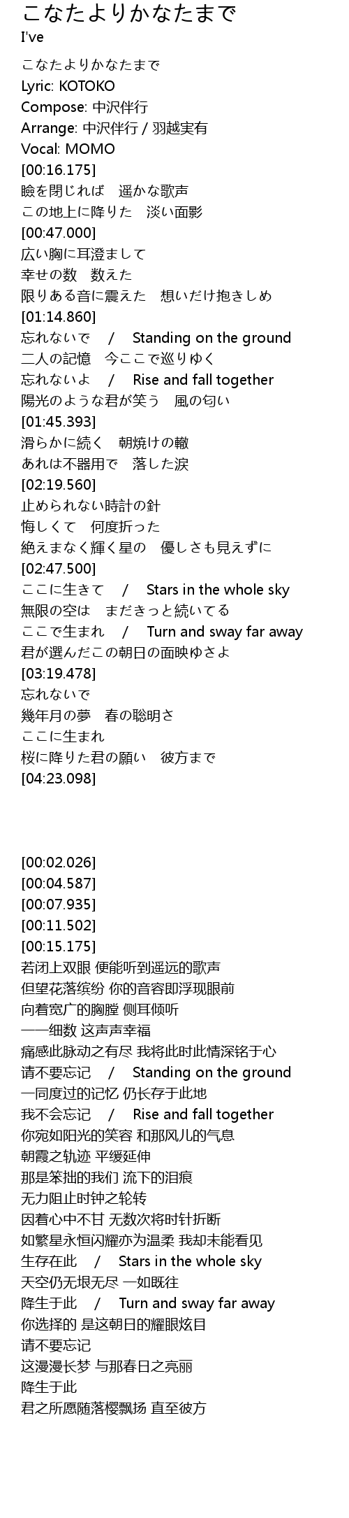 | [00:15.175] | Vocal: MOMO |