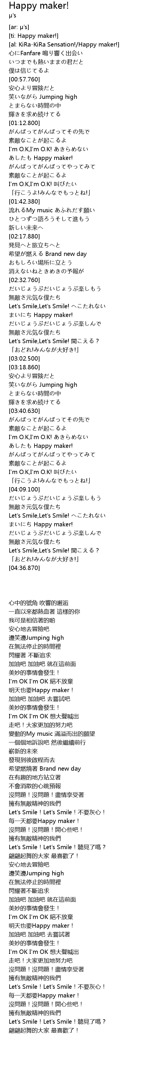 | [03:53.070] | あしたも Happy maker! |