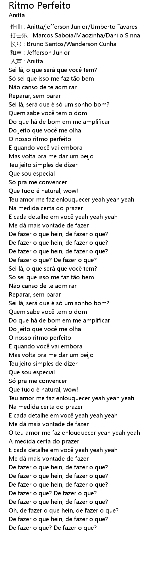 | [00:00.000] | zuò qǔ : Anitta jefferson Junior Umberto Tavares |