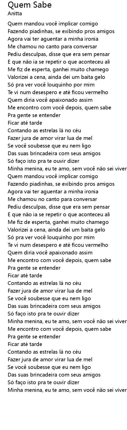 | [00:44.490] | So pra ver voc louquinho por mim |