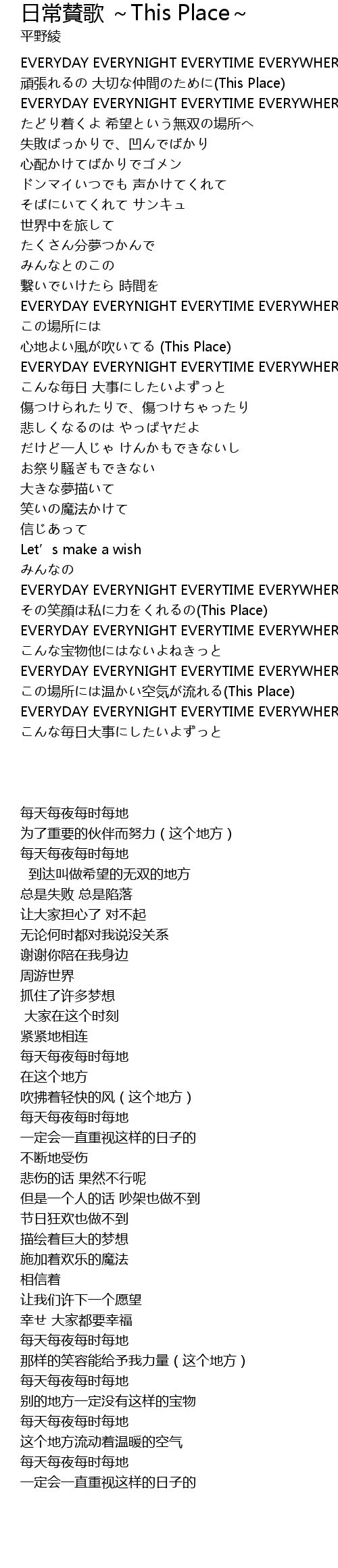 | [00:07.95] | 頑張れるの 大切な仲間のために(This Place) |
