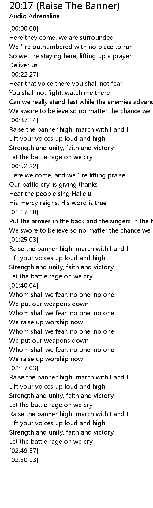 | [02:09.74] | Whom shall we fear, no one, no one |