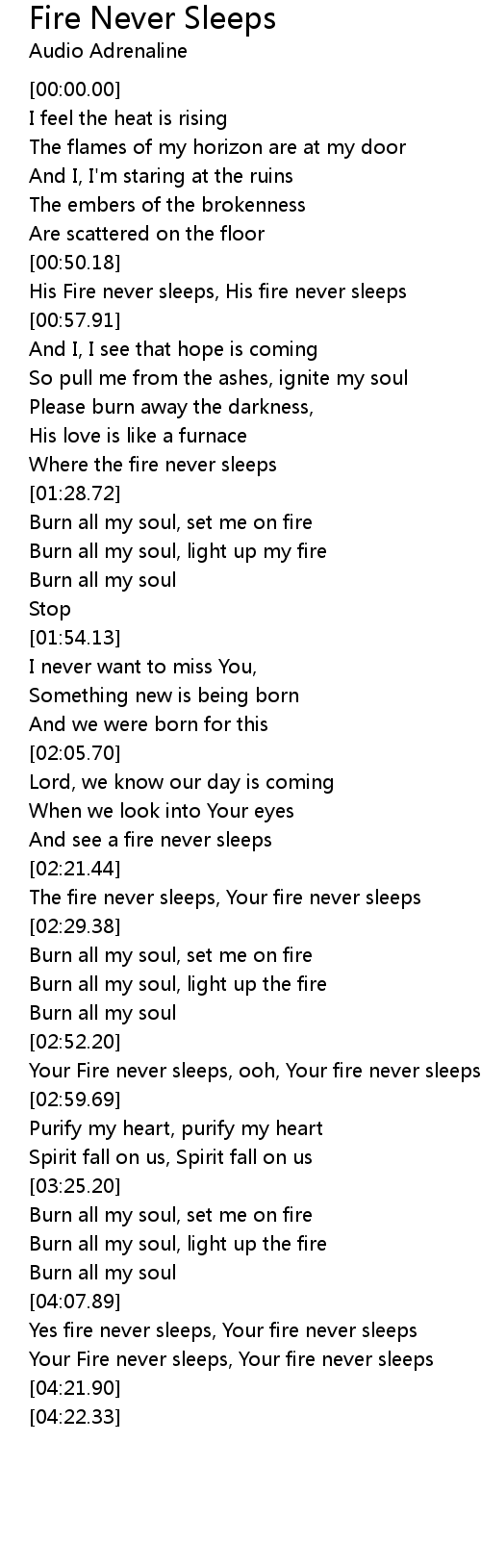 Your Fire never sleeps, ooh, Your fire never sleeps |