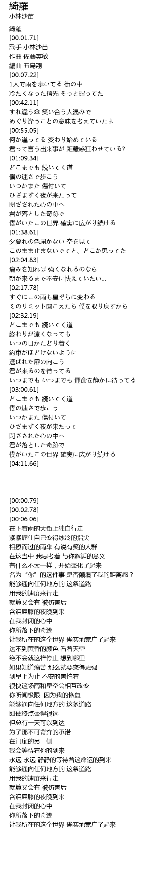 | [00:00.79] | 綺羅 |