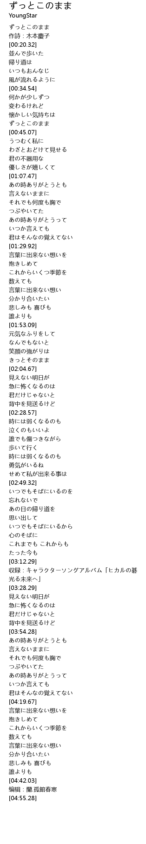| [03:15.29] | 収録:キャラクターソングアルバム「ヒカルの碁 光る未来へ」 |