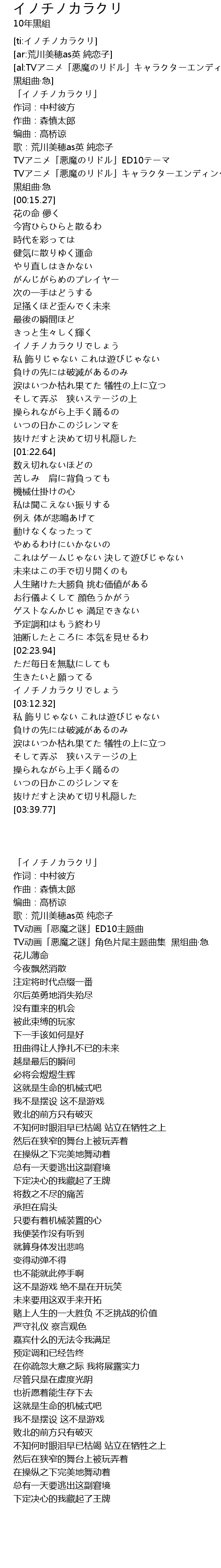 | [00:13.36] | TVアニメ「悪魔のリドル」キャラクターエンディングテーマ集 黒組曲·急 |