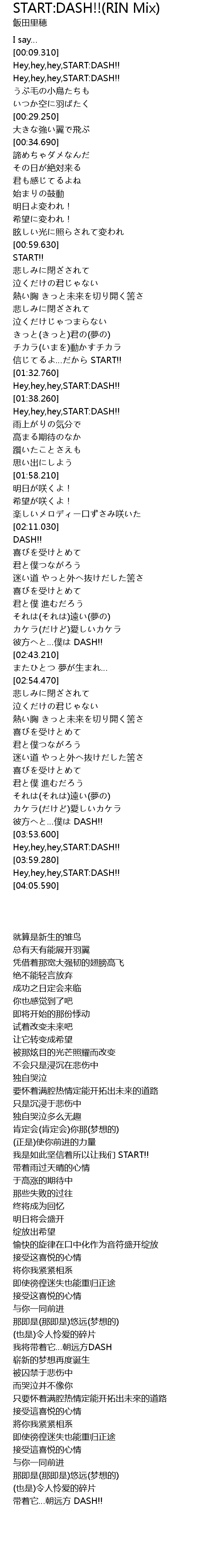| [04:02.350] | Hey,hey,hey,START:DASH!! |