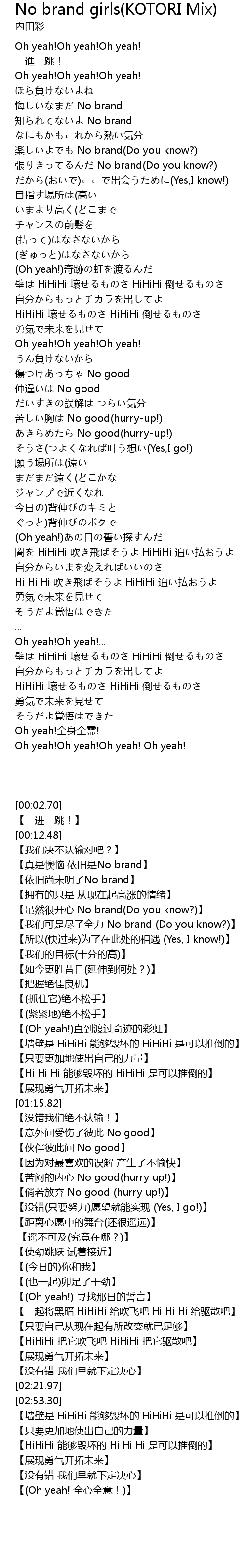 | [00:32.600] | 張りきってるんだ No brand(Do you know?) |