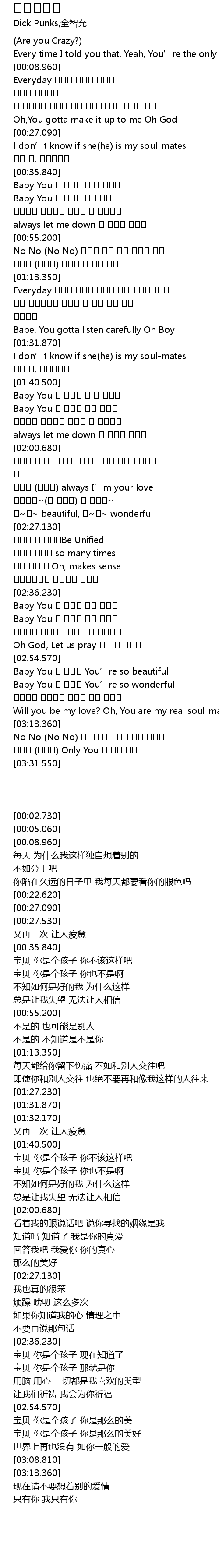 | [01:41.050] | Baby You 아 아이야 넌 좀 아니야 |