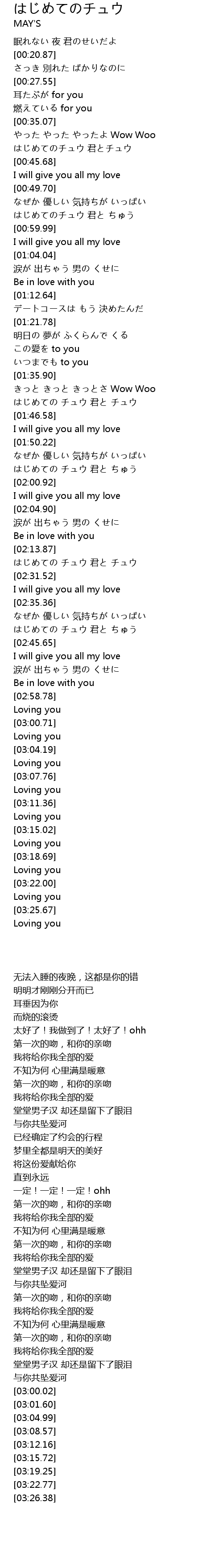 | [00:41.88] | はじめてのチュウ 君とチュウ |