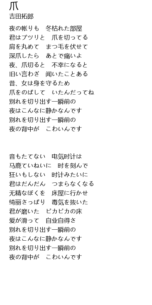 君はプツリと 爪を切ってる |