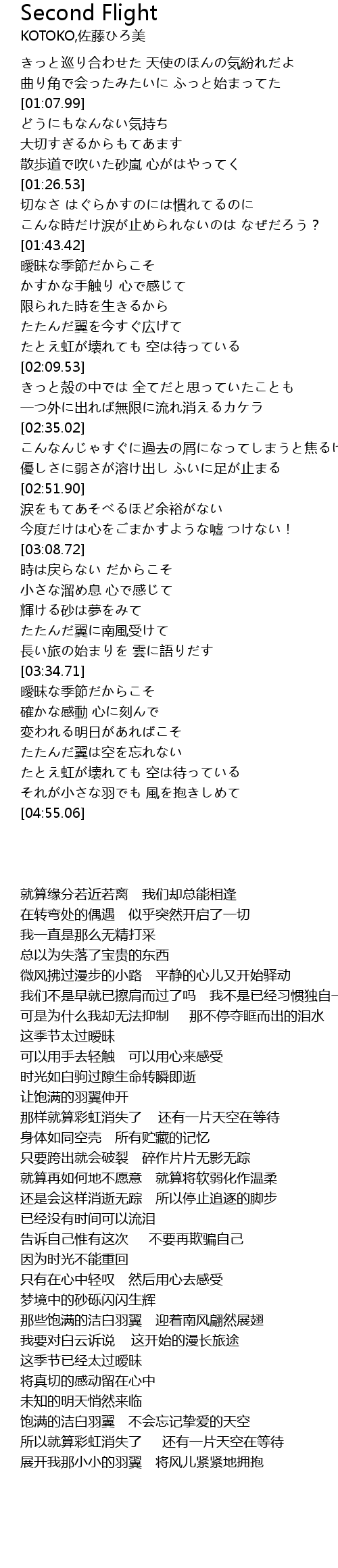 | [04:31.27] | たたんだ翼は空を忘れない |