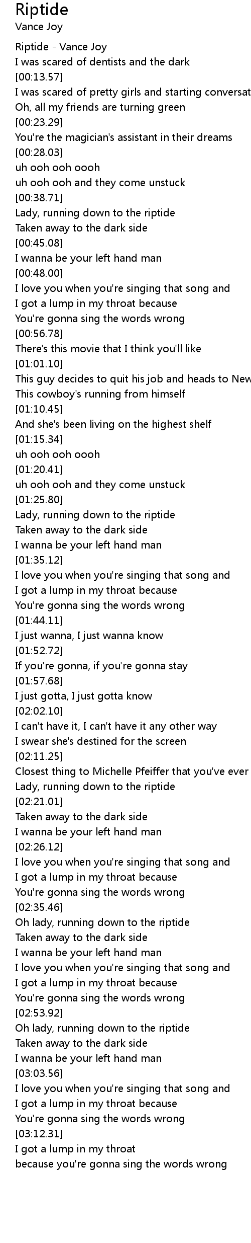 Riptide - Vance Joy |