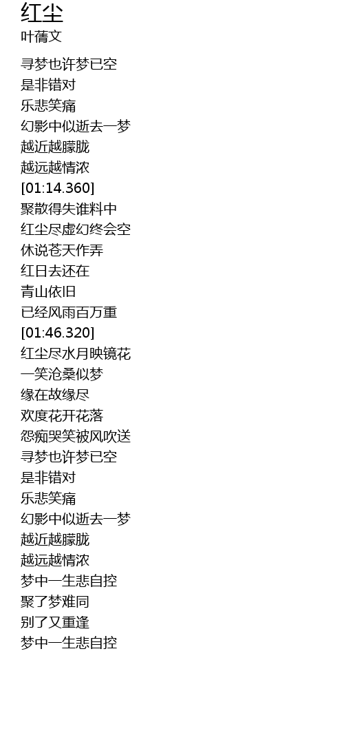 | [01:21.630] | hóng chén jǐn xū huàn zhōng huì kōng |