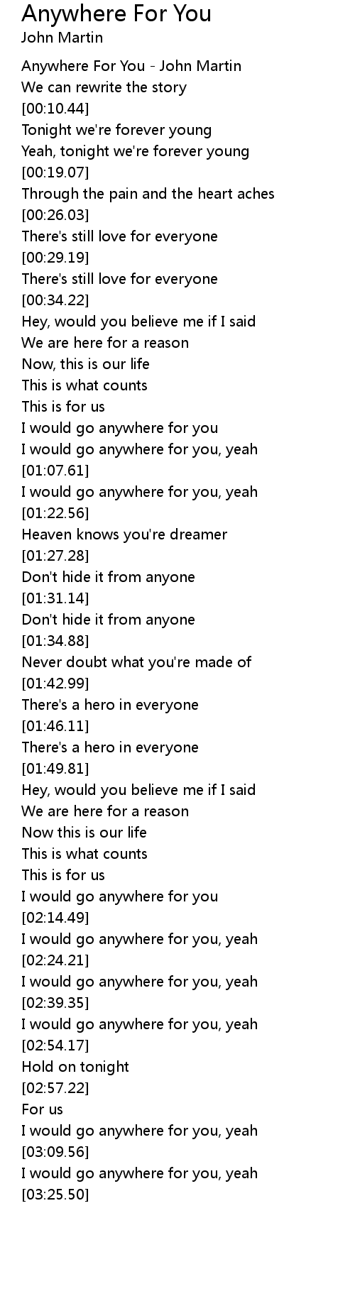 [00:00.00] Anywhere For You - John Martin