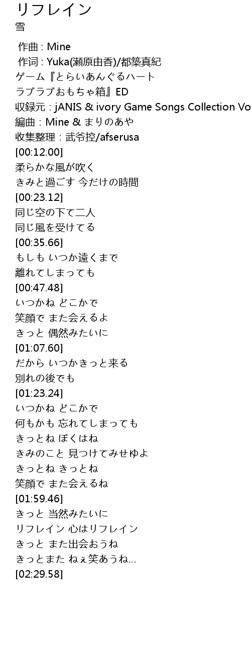 | [00:04.00] | 収録元:jANIS & ivory Game Songs Collection Vol.1 |