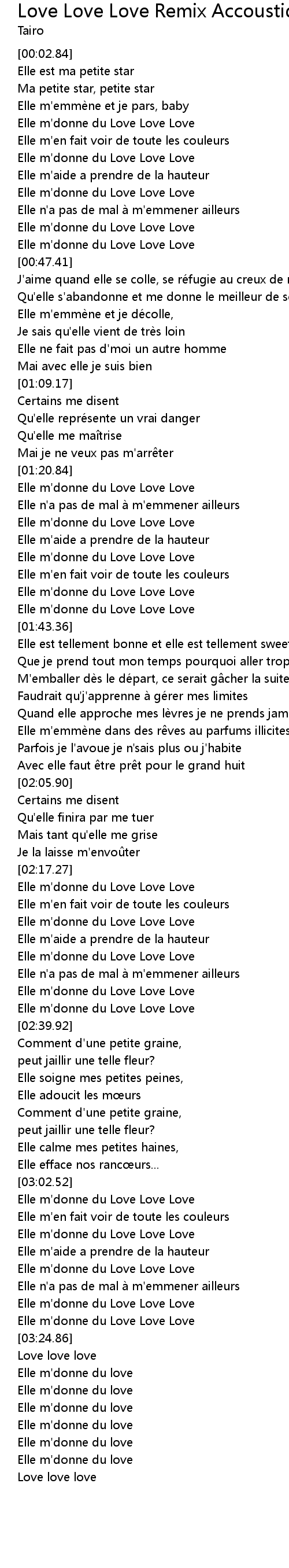 | [03:02.79] | Elle m'donne du Love Love Love |