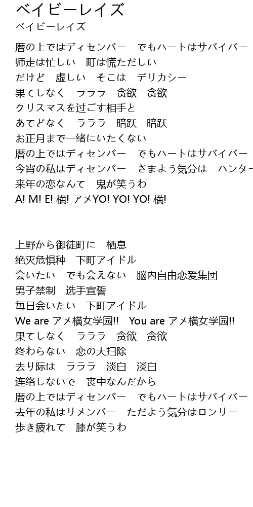 | Song | ベイビーレイズ |