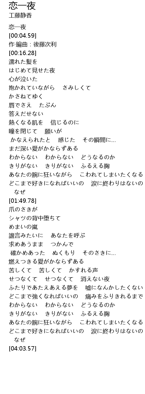 | [03:41.29] | あなたの腕に狂いながら こわれてしまいたくなる |