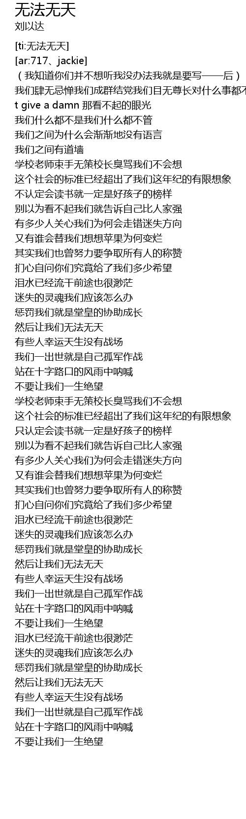 | [02:34.959] | rán hòu ràng wǒ men wú fǎ wú tiān |