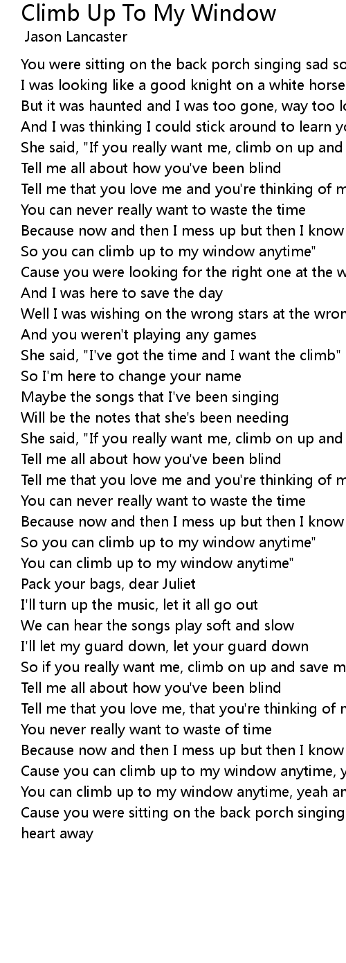 You can climb up to my window anytime" |