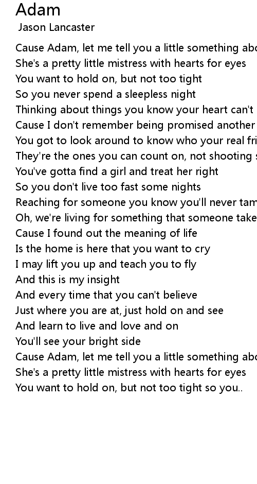Cause Adam, let me tell you a little something about life |