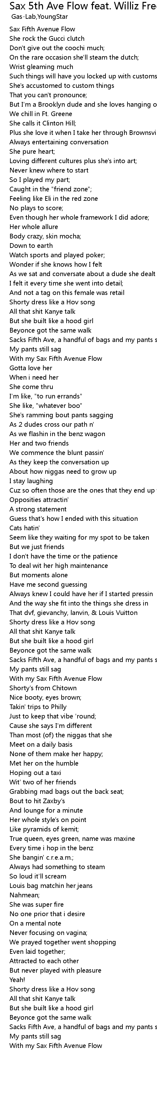 | [01:34.68] | With my Sax Fifth Avenue Flow |
