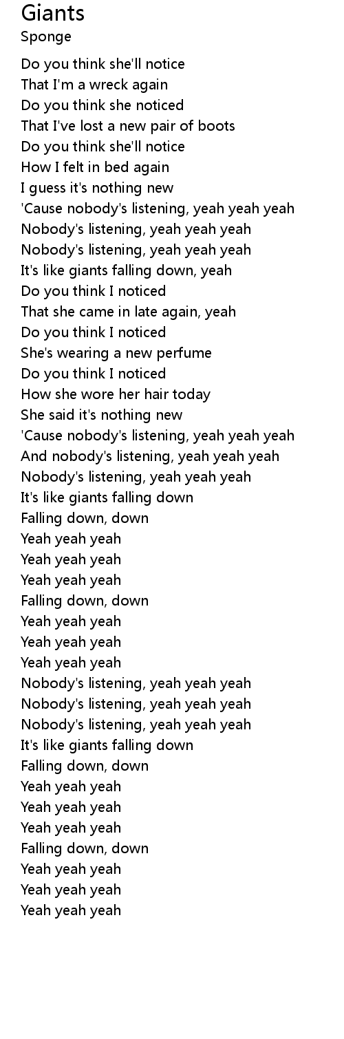And nobody's listening, yeah yeah yeah |
