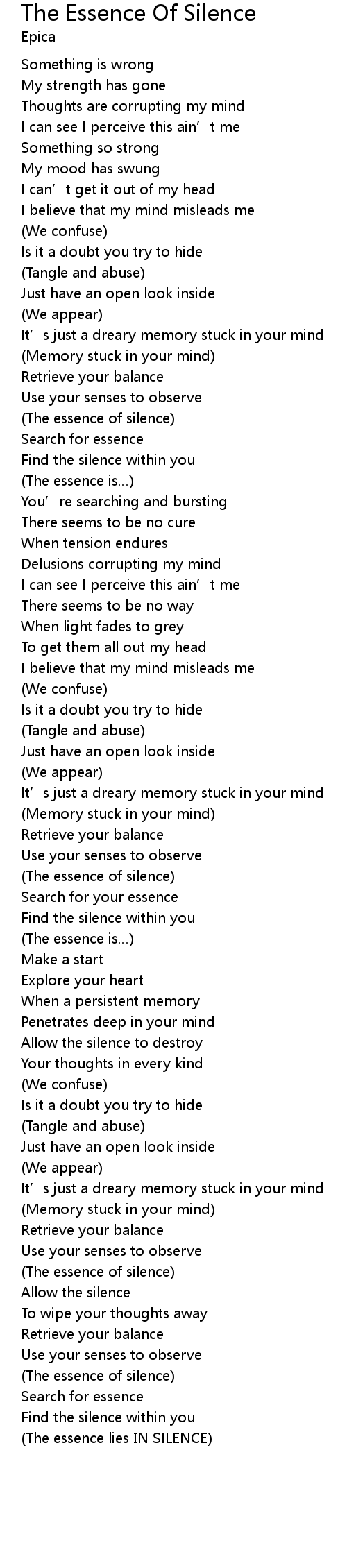 | Song | The Essence Of Silence |