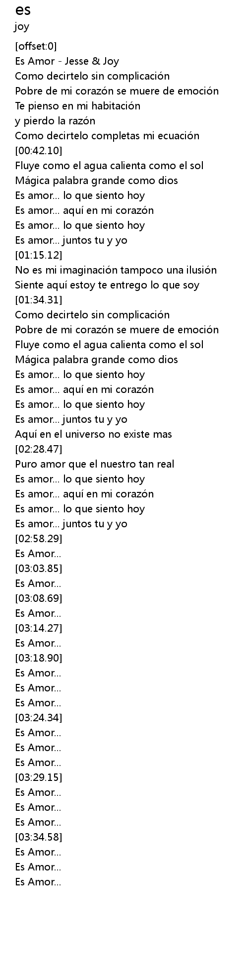 | [00:01.06] | Es Amor - Jesse & Joy |