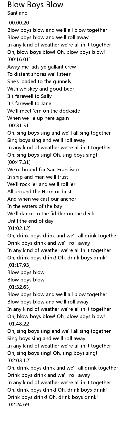 Blow boys blow and we'll all blow together |