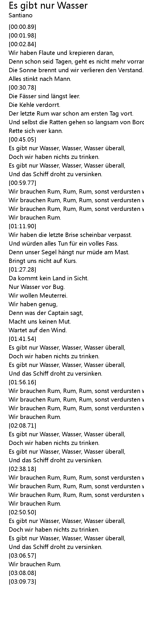 | [00:45.69] | Es gibt nur Wasser, Wasser, Wasser ü berall, |