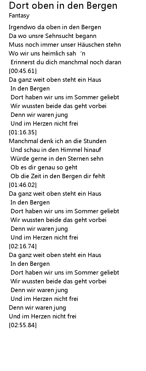 | [00:16.60] | Irgendwo da oben in den Bergen |