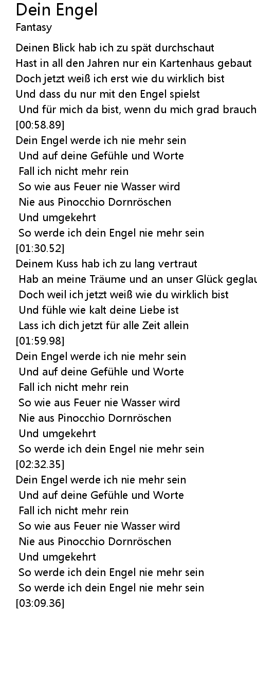 | [02:01.83] | Dein Engel werde ich nie mehr sein |